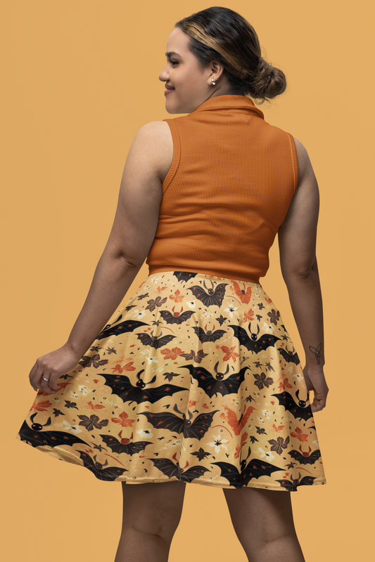 Spooky Cute Bats | Witchy Skirt | Magical Skirt | Yellow & Orange