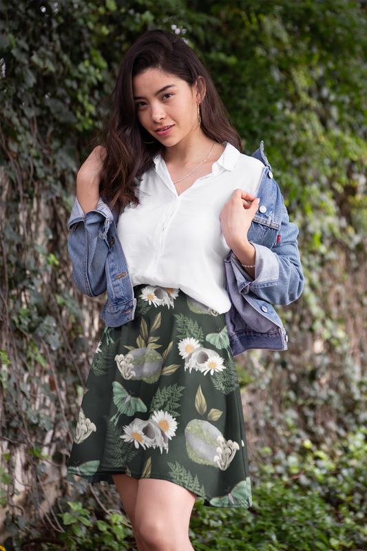 Skulls & Plants Green Witch | Witchy Skirt | Magical Skirt | Yellow & Orange