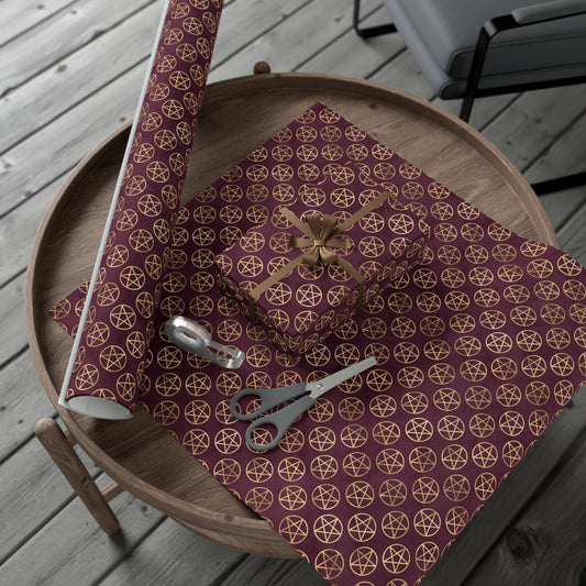 Gold & Merlot Pentagrams | Witchy Wrapping Paper | Boutique Gift Wrap