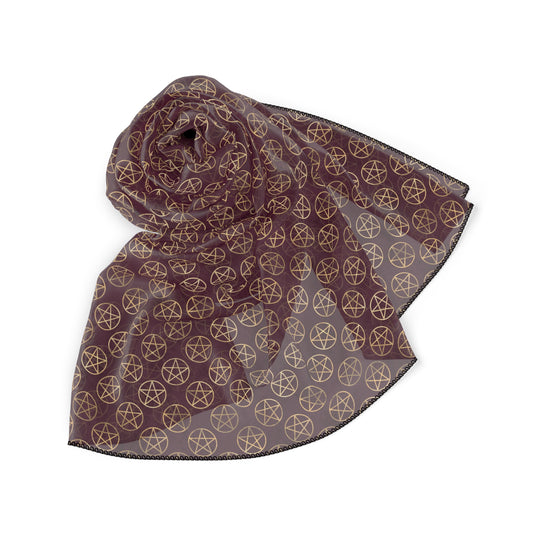 Pentagrams on Merlot Red | Witches Veil | Witchcraft Veiling Scarf