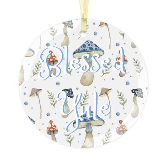 Glass Blessed Yule Ornament with Mushroom Design - Christmas Ornament - Ornament for Tree Winter Solstice - Pagan, Witch, Witchcraft